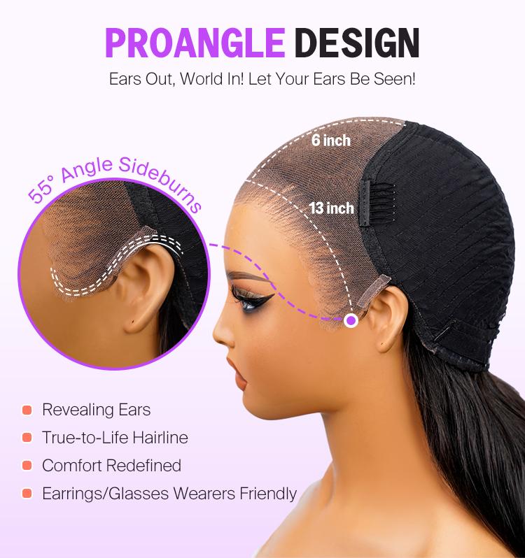 Ash Purple 13x6 Pre-Cut Glueless Lace Frontal Wig – Vietnamese Human Hair, Ear-to-Ear HD Lace, Pre-Styled with Realistic Hairline