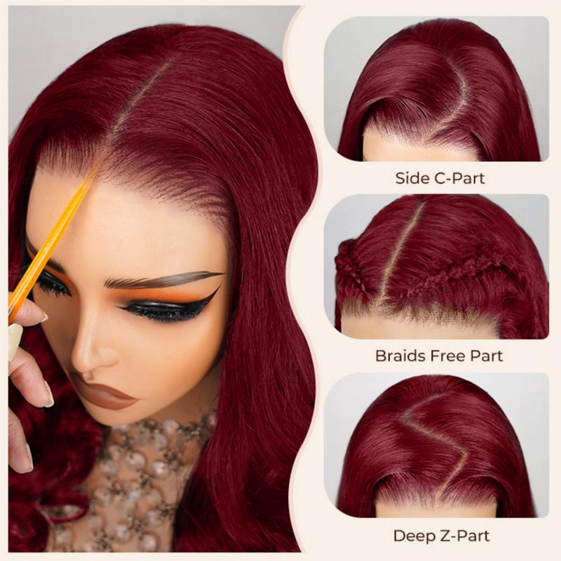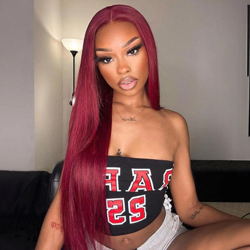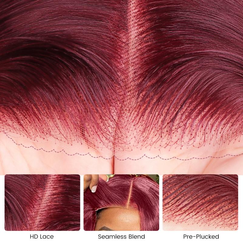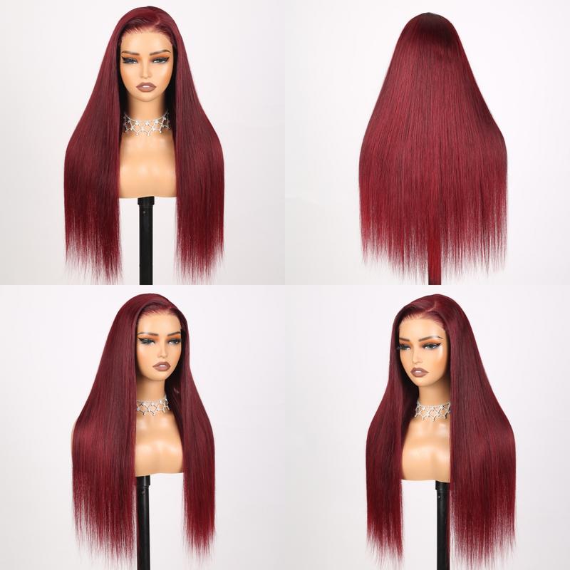 Burgundy 6x5 HD Transparent Lace Front Wig – Straight, Pre-Plucked, Vietnamese Human Hair, 180% Density for Women